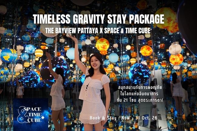 The Bayview Pattaya X Space & Time Cube+ presents “Timeless Gravity Stay”. Step into an experience beyond time. Enjoy a room package with breakfast plus exhibition tickets for 2 persons. Starting from THB 3,640 with exclusive privileges included.